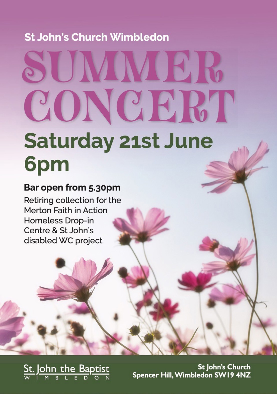 Venue: St John’s Church, Spencer Hill, Wimbledon, SW19 4NZ.